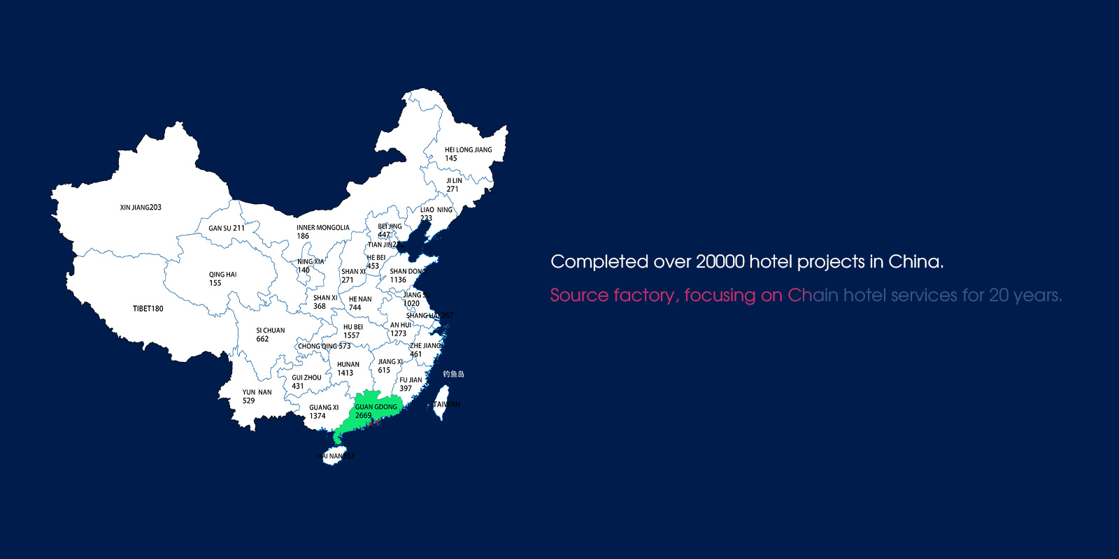 Компанијата има над 20 години искуство во хотелски инженерски услуги и соработува со хотелот „jinинџианг“ Виндам Груп, хотелската група Атур, Досен Груп, Ванда Груп, Групацијата Елонг, Групацијата ДеЛонг, Групацијата Сунмеи, итн. Постигнете долгорочна стратешка соработка.